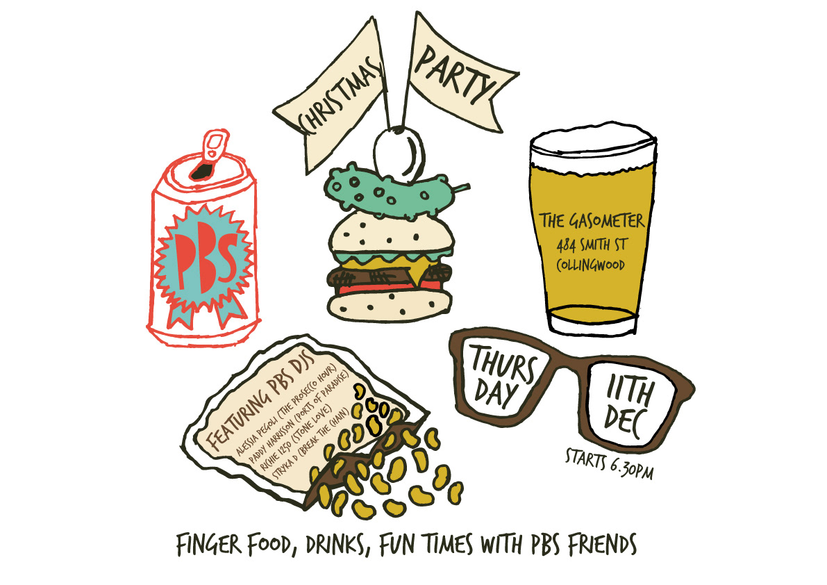 Artwork for pbsfm.org.au 2014 christmas party. A local radio station based in Collingwood, Melbourne.